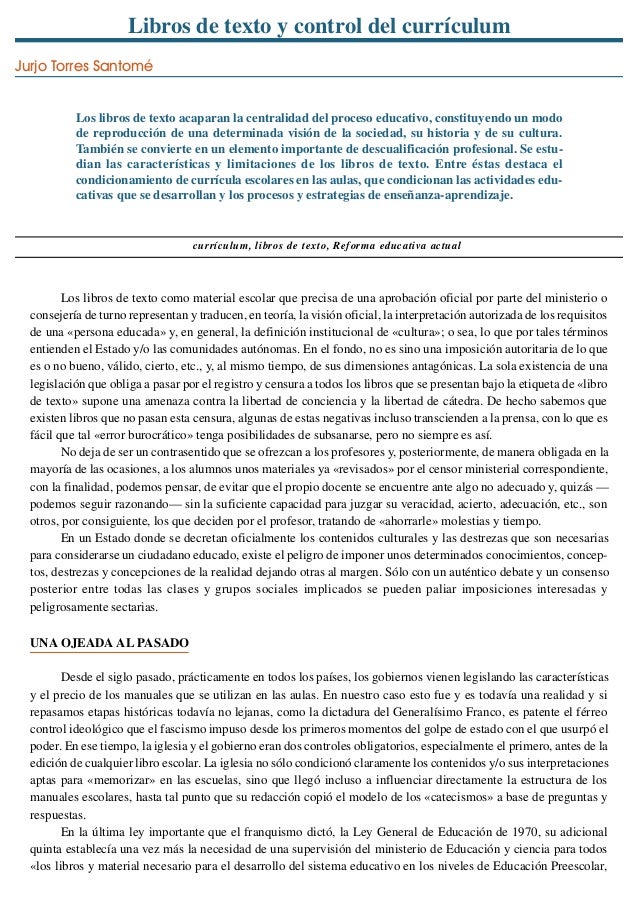 Libros de texto y control del currículum\u0026quot; Jurjo Torres Santomé (1989\u2026